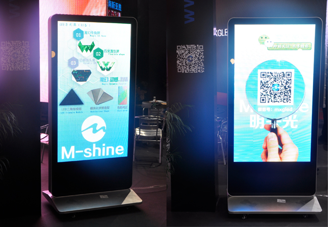 此外,明興光展臺主要以P4室內外弧LED顯示屏為中心,左右分別為P3.91室內LED顯示屏、P8戶外表貼LED顯示屏以及兩側擺放LED廣告機及LED異形屏搭載多屏控制系統(tǒng)、現(xiàn)場擁有超強震撼效果,令人點贊。