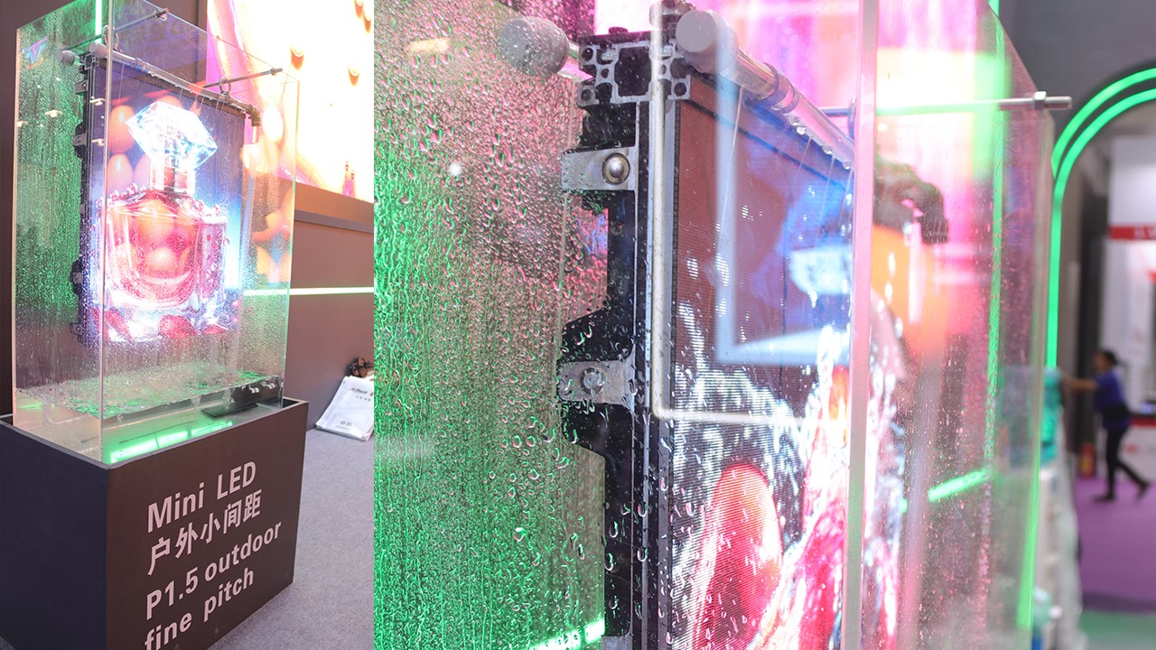 明興光MS系列戶外小間距LED屏,以其精細(xì)的畫質(zhì)和超生動(dòng)的色彩表現(xiàn),讓現(xiàn)場觀眾驚嘆不已。獨(dú)特的倒裝共陰設(shè)計(jì),高效節(jié)能,高刷高亮,即使在強(qiáng)光下,也能提供清晰、生動(dòng)的顯示效果。此次展會(huì),明興光攜戶外P1.5產(chǎn)品,除做整墻大面積展示,更添加整屏浸泡測試場景,讓觀眾對產(chǎn)品的展示效果和防護(hù)性能有更加直觀的體驗(yàn)。在展場中,它像一面璀璨的鏡子,映照出了我們對LED技術(shù)未來的無限期待。